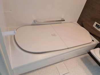 浴槽横に手すりを設置したことで立ち上がりやすくなりました。フロフタは軽量設計なので簡単に取り外しできます。