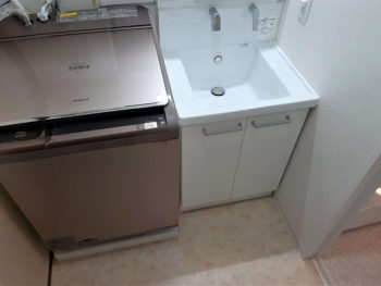 洗面台のサイズを小さい物に取替、洗濯機と横並びで設置しました。ボウルが深い物を選び、衣類の手洗いなどもしやすいものを選びました。