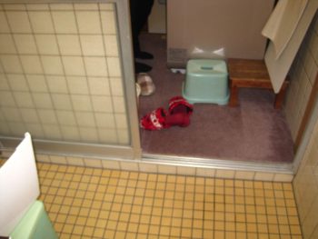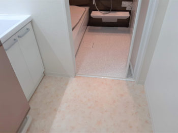 以前より脱衣スペースが広くなったのでゆっくり着替え等できます。床は水に強いクッションフロアを張りました。