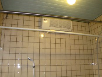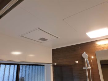 天井に埋め込み式の暖房乾燥換気扇を設置しました。天井にすっきり納まり、邪魔になりません。防カビ仕様の天井なので掃除も楽々です。