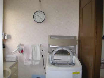 洗濯カゴを置くスペースが狭く窮屈な状態でした。