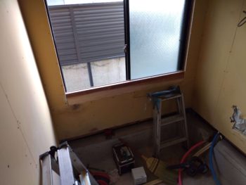 窓側に水に強いメラミン化粧板を張ります。