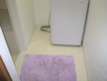独立した脱衣スペースも作り、洗濯機も置けるようにしました。床をクッションフロア、天井・壁をクロスで仕上げました。