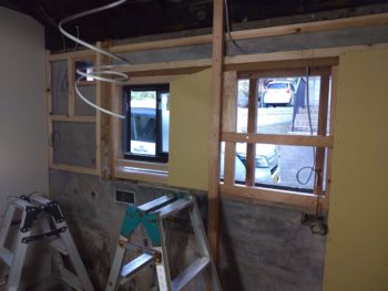 低くて斜め天井のためユニットバスの必要設置寸法が取れず、在来工法での施工をご提案しました。 大きい窓も冷気が入り込んでくるためサイズを小さくし窓に取替をおすすめしました。 |