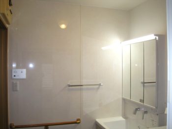 | ご提案内容 | 器具の入れ替えをし、内装も全てやり替えました。アクセントを付けたいをいうご要望により洗面台横の壁にパネル張りをご提案しました。お手入れとアクセント一石二鳥の壁になりました。 |