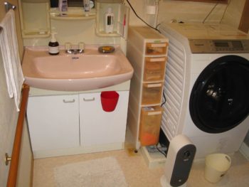 棚を外し、標準高さの洗面台を取り付けました。天井・壁のクロスも張り替えました。