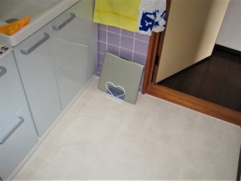 洗面所の床のシートを張替え、新しい雰囲気の洗面所になりました。