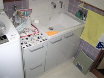 洗面台を新しくしました。新たに収納を付けました。タオルなど収納しておけます。