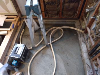 土間コンクリートを打ちました。配管もやり替えます。