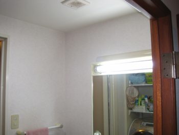 洗面台を外すので壁紙もキレイに張り替えます。