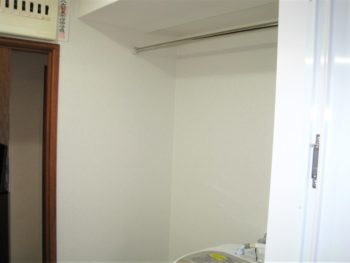 洗濯機の上にランドリーパイプを新たに備え、洗濯機から出したものをそのままかけれるようにしました。