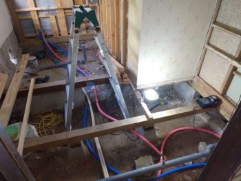浴室を解体し、洗面所の床も傷みがあったため解体しました。