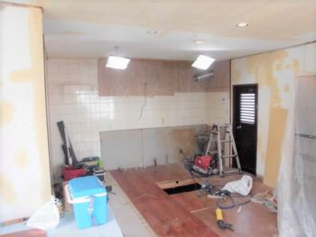 造り付けの収納・カウンターを撤去し広々した空間になってきました。