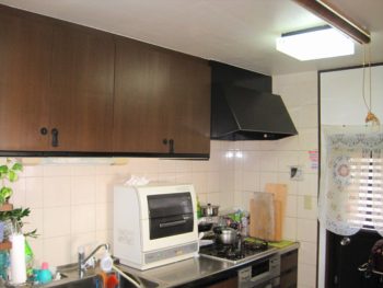 天井・壁のクロスを張替え明るい空間になりました。天井の照明も一部取替をし、より明るいキッチンになりました。