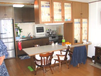 造り付けの収納・カウンターが邪魔をしてみんなで座れるテーブルが置けない状況でした。