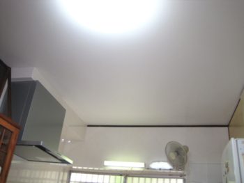 天井をクロス張りで仕上げました。キッチンも変えたことで白く明るい空間になりました。