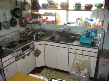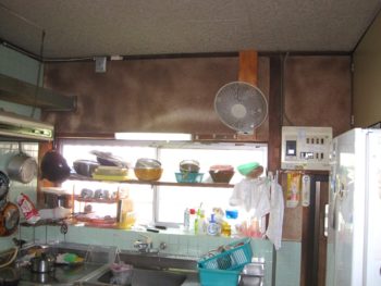 | ご提案内容 | L型のシステムキッチンに取替をし、掃除がしやすいキッチンパネル張りで仕上げます。天井も汚れが目立っているのでクロス仕上げを提案しました。 |