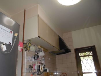 吊り戸は以前と同じ長さにし、圧迫感を無くしました。換気扇はお掃除しやすいものにしました。