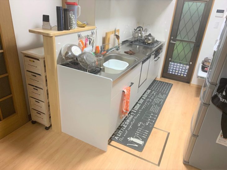 キッチンの幅が短く作業スペースがほとんどない状態でした。