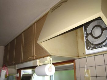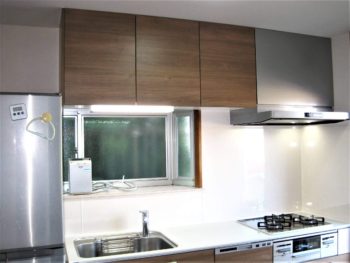 レンジフードを掃除しやすい物に変えました。吊り戸もキッチンの幅に合わせ狭くしました。