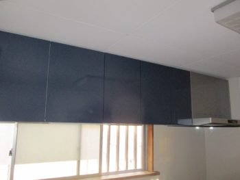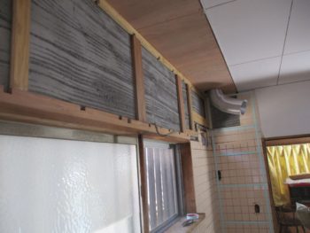 吊り戸も付けたので普段使わないものは十分に収納できます。換気扇も掃除がしやすいものに取り替えました。