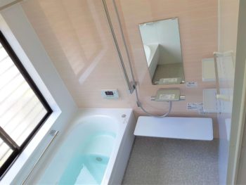 同じサイズのユニットバスに変えました。手すりを設置し、安全に出入りできます。浴槽は半身浴もできる段差付きの物にしました。