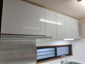 フードも掃除がしやすいタイプに変え、吊り戸を小さくしました。圧迫感を無くしスッキリしました。