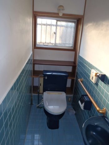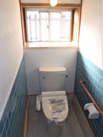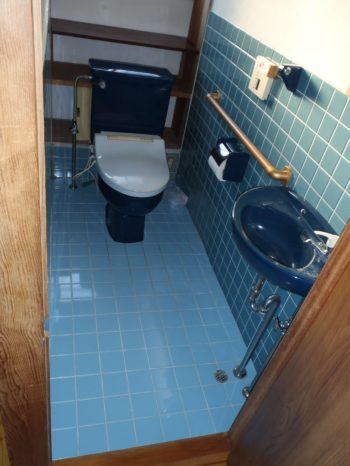壁のタイルをそのままにし、それ以外の内装をキレイにしました。手洗い器は再取り付けをし、便器は新しく取り付けました。