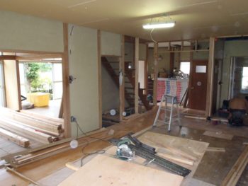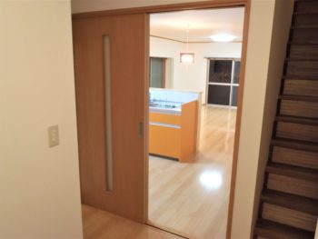 廊下だった部分をLDKに取り込みました。階段の両サイドに壁を作りました。
