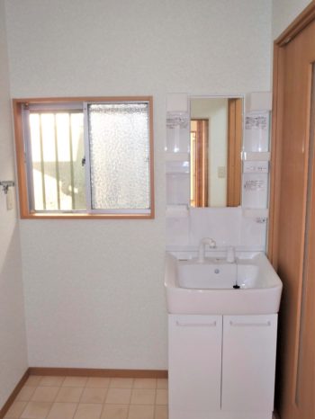 洗面台は幅60㎝サイズに取替、窓も隠れないサイズにしました。洗濯機も楽に置ける様になりました。