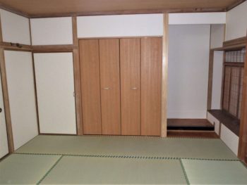 床の間を狭くし、クローゼットを作りました。畳を表替えし、天井・壁のクロス仕上げにしました。