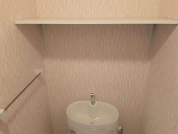 トイレ背面の壁に棚を取付、トイレットペーパーのストックなど置ける様にしました。