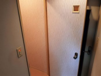 扉のクロスも張替を行い、一体感がでるように合わせました。
