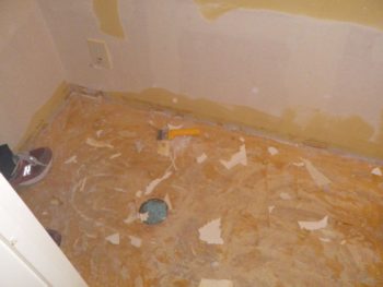 床のクッションフロアを剝がします。