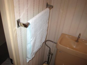 タオルかけも新しくします。